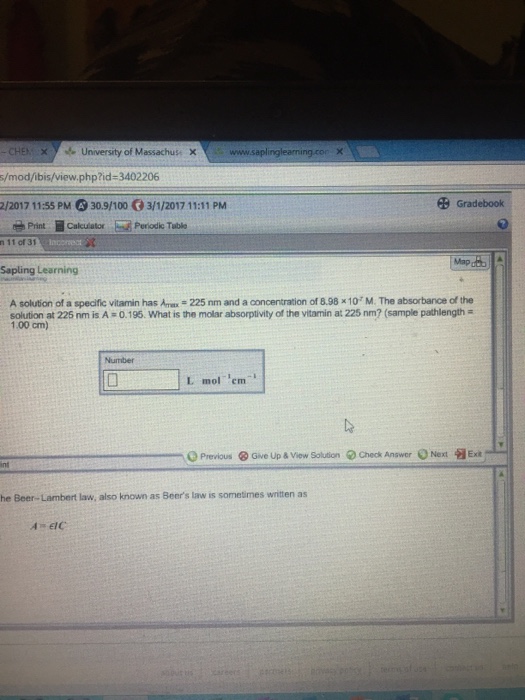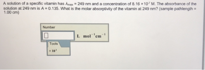 Solved A Solution Of A Specific Vitamin Has Max 249 Nm An