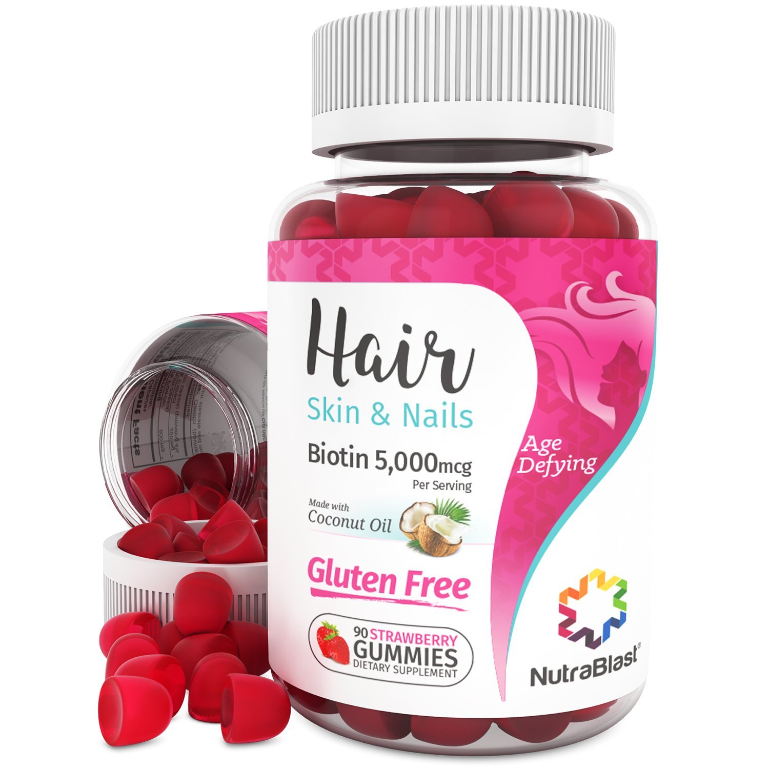 Nutrablast Biotin 5000 Mcg Enhanced With Coconut Oil Hair Skin And Nails Vitamins Made In Usa 90 Strawberry Gummies