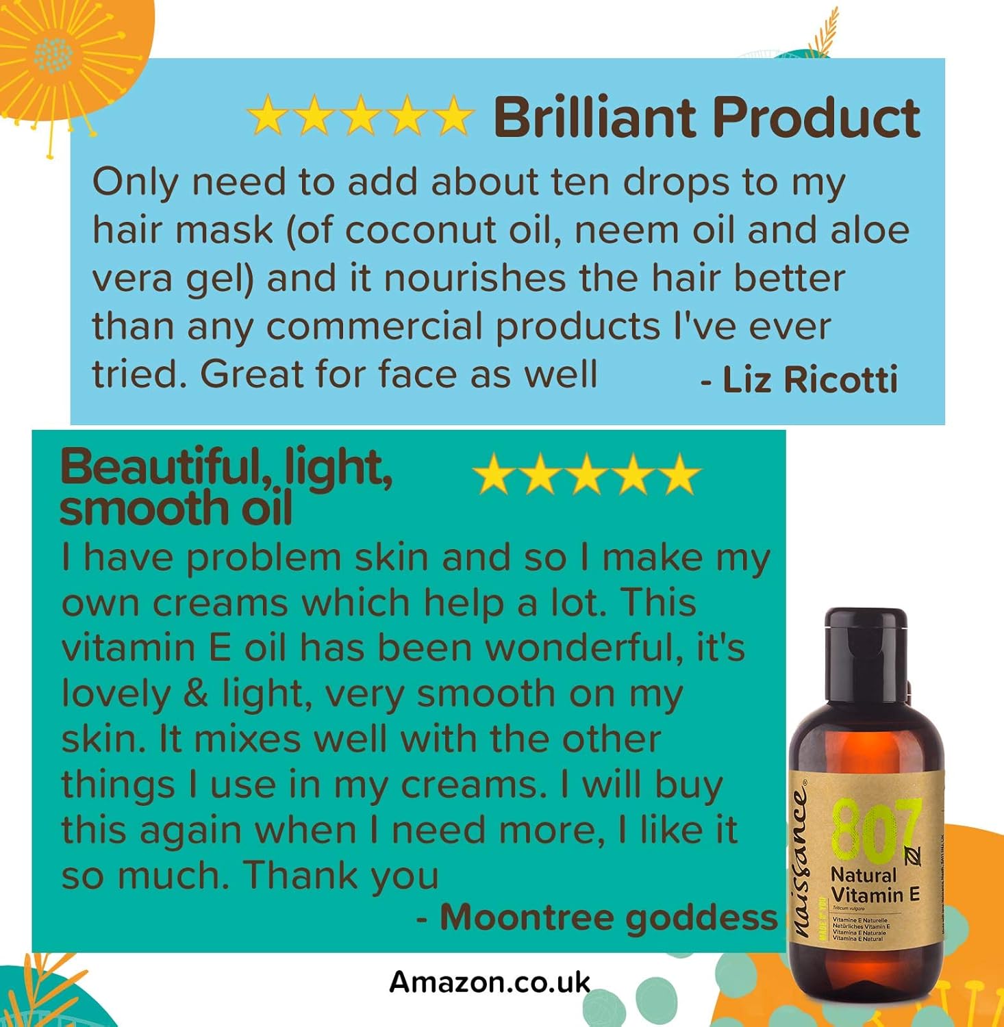 Naissance Vitamin E Oil 3 4 Fl Oz 100ml Pure Natural Vegan Cruelty Free Hexane Free No Gmo Ideal For Aromatherapy Skincare Haircare