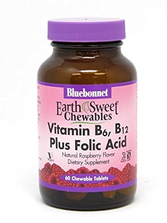 Bluebonnet Nutrition Earth Sweet Vitamin B6 B12 Plus Folic Acid Chewable Tablets Vegan Vegetarian Gluten Free Soy Free Milk Free Kosher 60