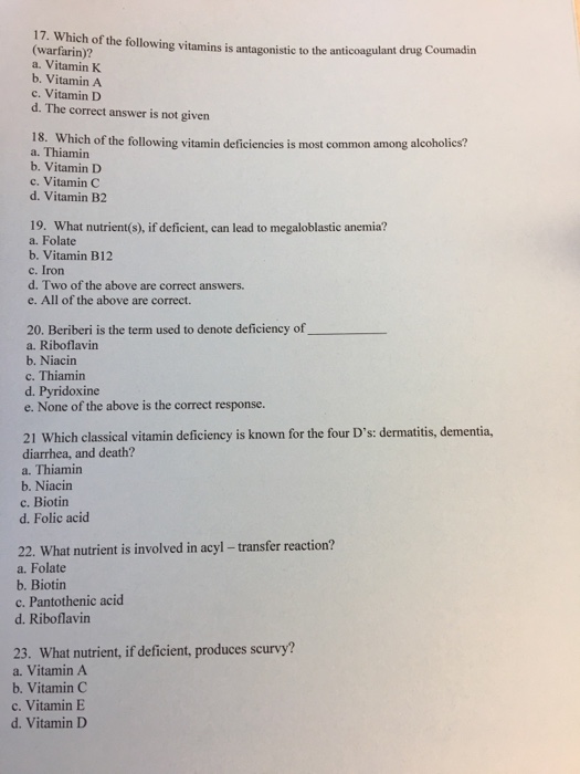 Solved Which Of The Following Vitamins Is Antagonistic To