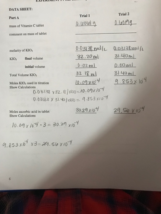 Solved Calculate The Moles Of Vitamin C In Tablet For Bot