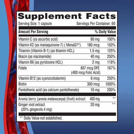 Of vitamin k2 as menaq7 400 mg. Vitamin k2 as menaq7 aronia berry and ginger to properly transport and secure calcium increase blood flow and manage the c reactive protein respectively for supporting arterial flexibility and promoting cardiovascular health. Free shipping for many products.