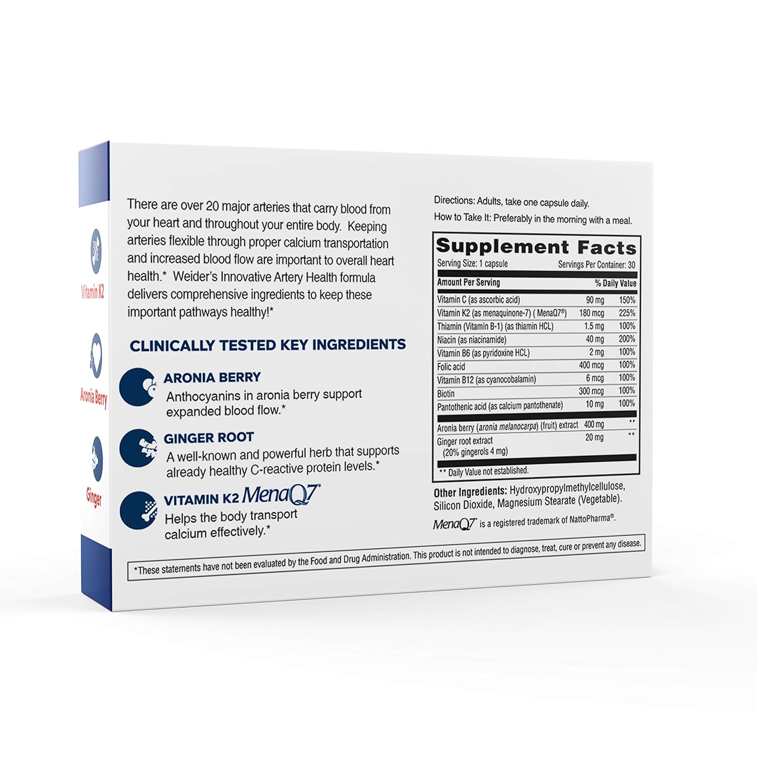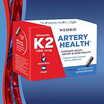 Weider artery health with vitamin k2 60 veggie caps. Weider artery health with vitamin k2 60 veggie caps. Weider artery health was developed to help keep arteries flexible through proper calcium transportation and increased blood flow all important to overall heart healthwatch the video to learn about the part that vitamin k2 plays in our comprehensive formula. There are over 20 major arteries that carry blood from your heart and throughout your entire body.