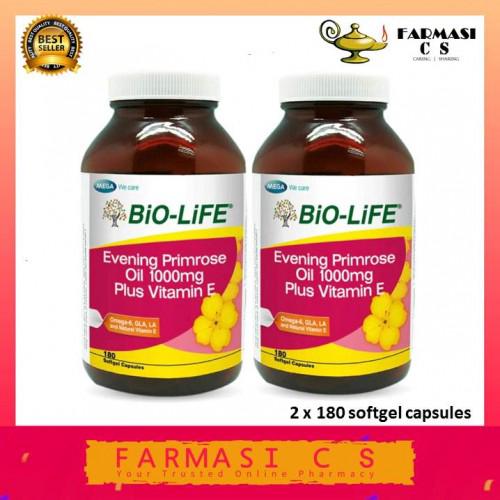 Bio Life Evening Primrose Oil 1000mg Plus Vitamin E 180s X 2 Twin Exp 03 2020