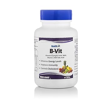 Healthvit Nutrition Natural B Vit Vitamin B Complex With Biotin Vitamin C And Folic Acid 60 Tablets Vitamins B1 B2 B6 For Boosts Energy Mental
