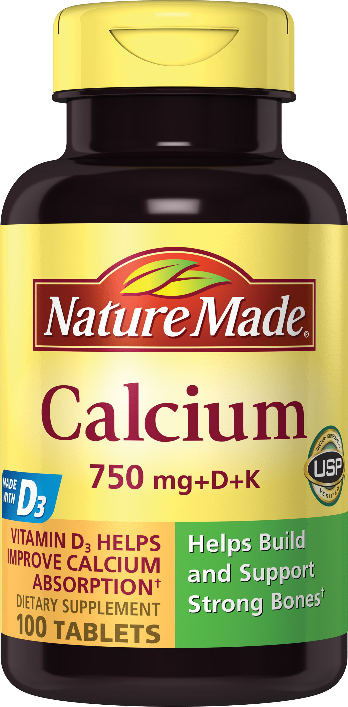 Nature made calcium 750 mg d k dietary supplement tablets at walgreens. Each serving of nature made calcium 750 mg with vitamins d and k provides 750 mg of calcium 125 mcg 500 iu of vitamin d3 and 40 mcg of vitamin k to support healthy bones calcium helps support strong bones vitamin d helps improve calcium absorption.