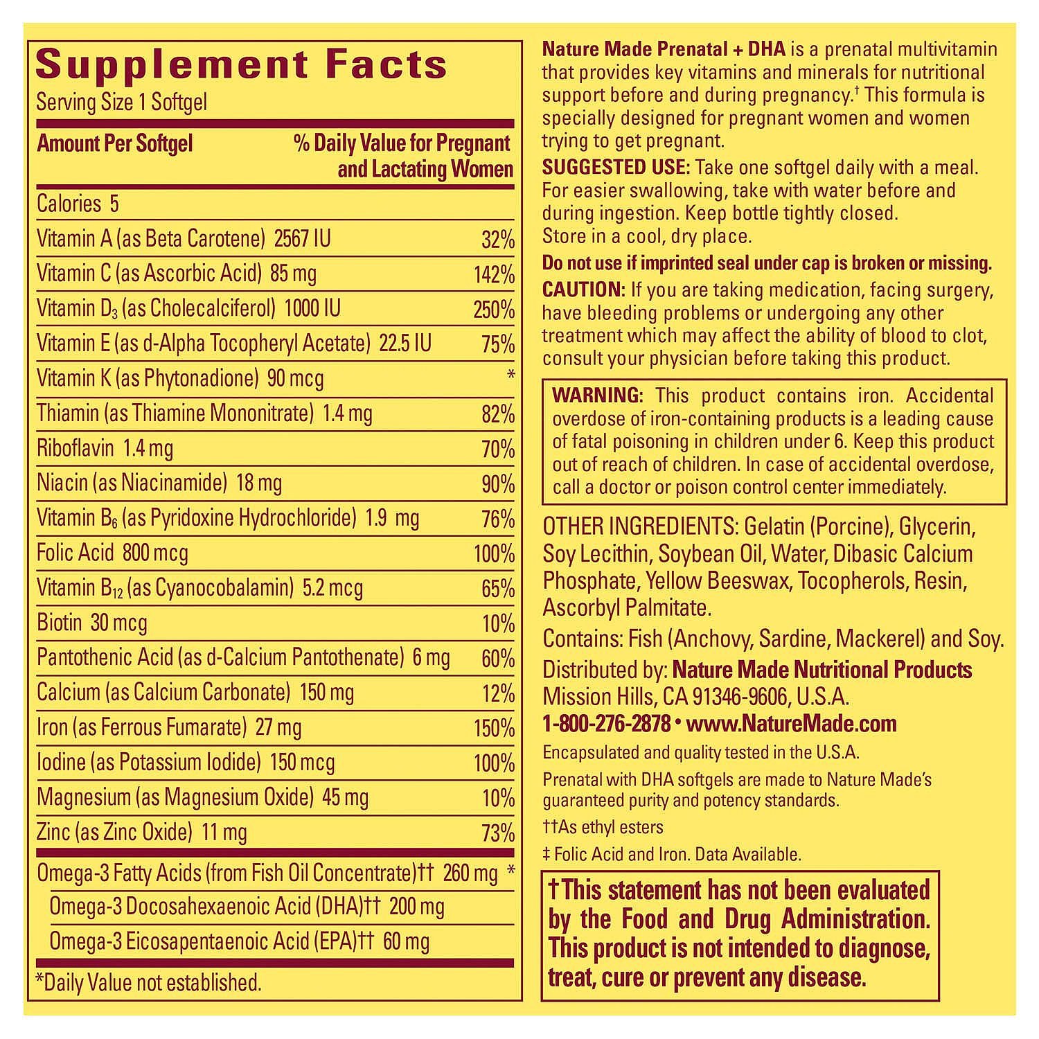 Nature made prenatal multi 200mg dha is clinically proven to ensure absorption of key nutrients and provides a full vitamin profile including all 8 b vitamins as well as fat soluble vitamins vitamins a c d e and k. Nature made prenatal multi 200 mg dha is guaranteed to meet our high quality standards it is made from carefully. Nature made prenatal multi 200 mg dha is guaranteed to meet our high quality standards it is made from carefully.