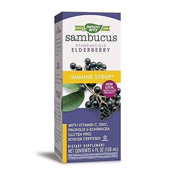Nature S Way Sambucus Immune Elderberry Syrup Herbal Supplements With Echinacea Zinc And Vitamin C Gluten Free Vegetarian 4 Ounce Packaging May