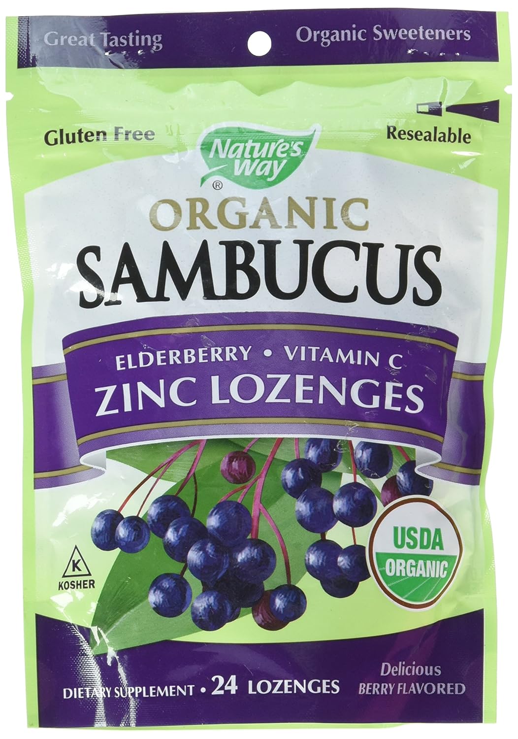 Nature S Way Organic Sambucus Lozenge Elderberry And Zinc 24 Count Pouch Packaging May