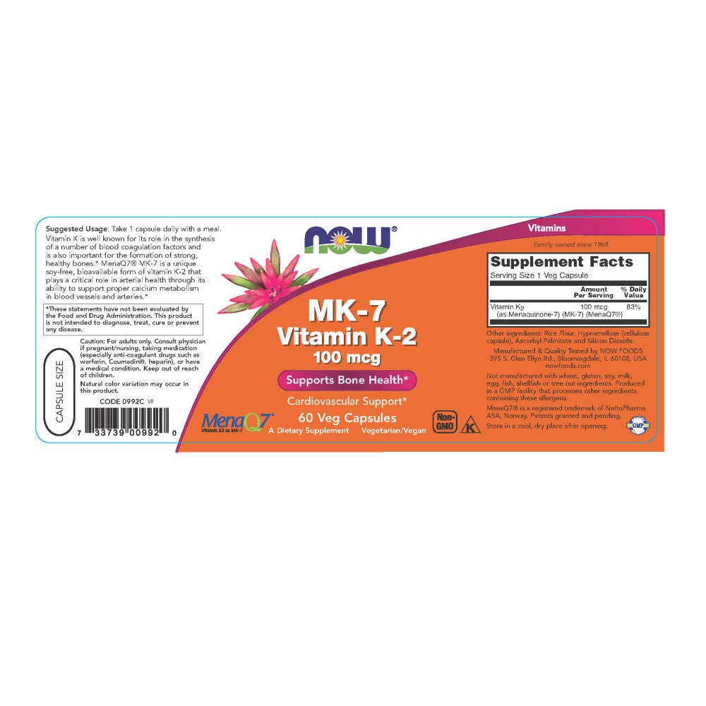 Now Supplements Mk 7 Vitamin K 2 100 Mcg 60 Veg Capsules