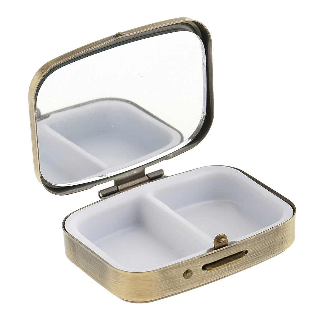 2 Compartments Travel Vitamin Organizer Medicine Tablet Box Trinket Earring Storage Case Container With Mirror