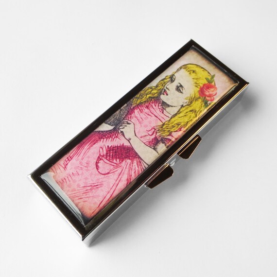 Alice In Wonderland Pill Box Pink Pill Case Pill Container Gift For Her Medicine Vitamin Organizer Supplement Medication Holder P59