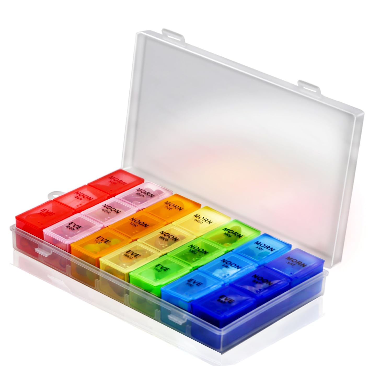 Pill Organizer Box Weekly Case Medicine Organizer Vitamin Organizer Reminder Daily Am Pm Day Night