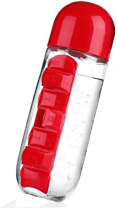 Sanyal Pill And Vitamin Organizer Water Bottle Medicine Organizer Water Bottle With Removable 7 Days Pill Compartments 600 Ml Water Bottle Random