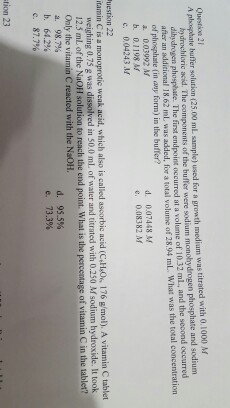 Solved 21 And 22 Please 21 A Phosphate Buffer Solution 2