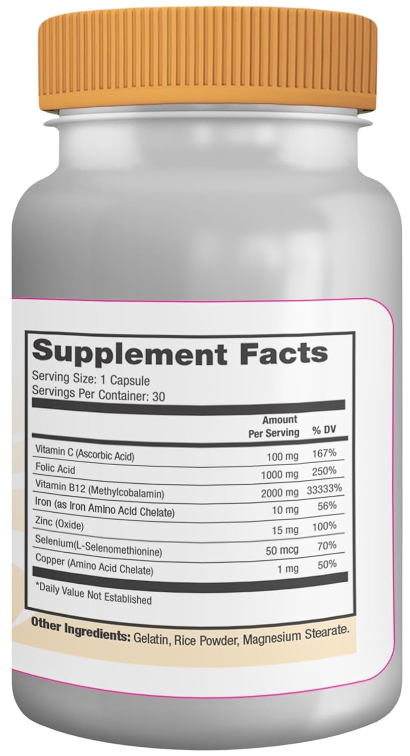 Blood Builder Iron Supplement Includes Vitamin C Folic Acid B12 Iron Zinc Selenium And Copper