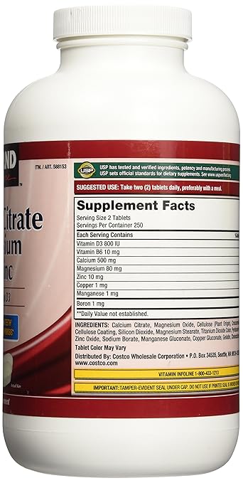 Kirkland Signature Calcium Citrate Magnesium And Zinc 500 Tablets