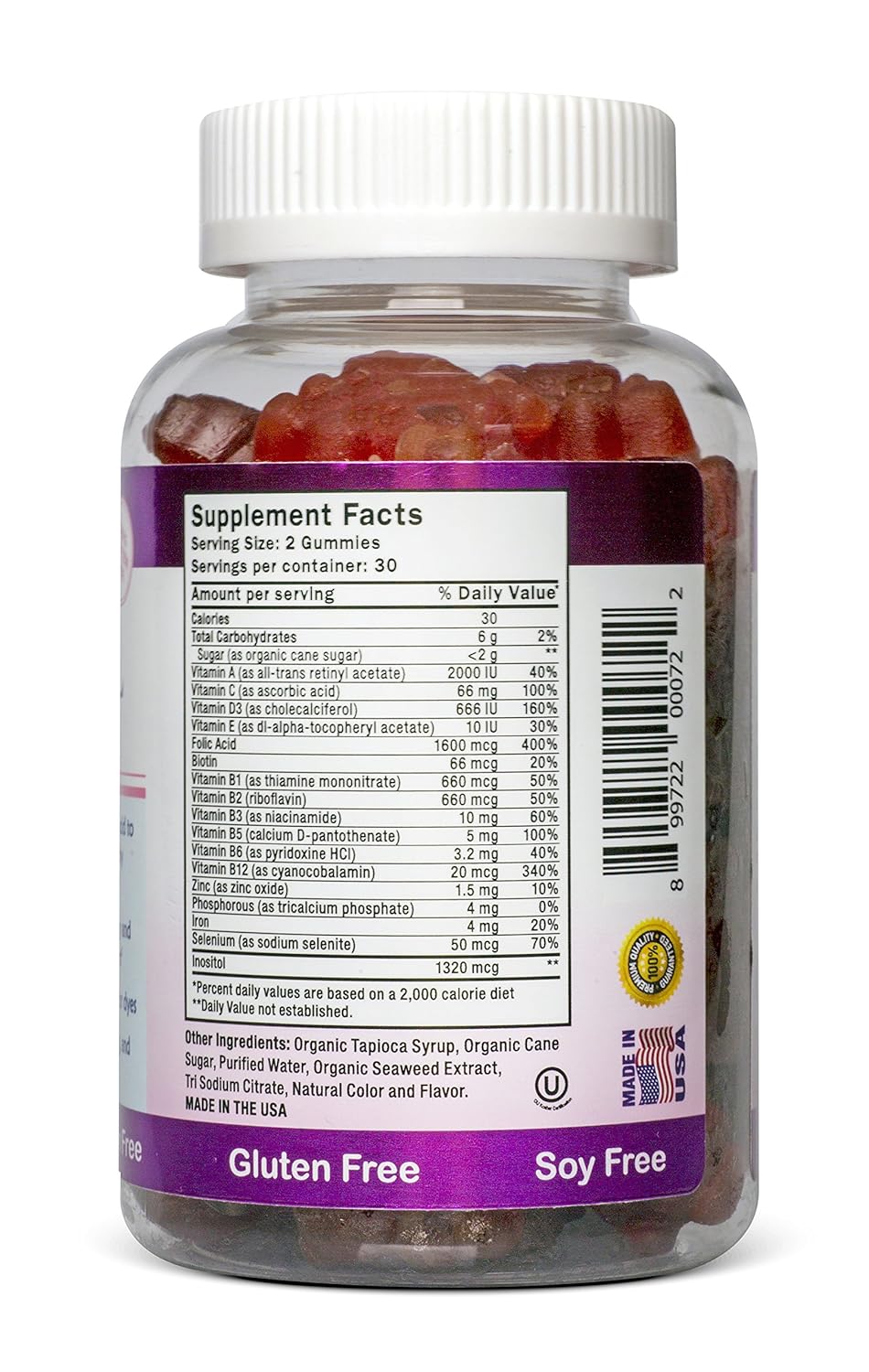Ecosafe Prenatal Multivitamin Gummy Gelatin Gluten Soy And Dairy Free 30 Servings