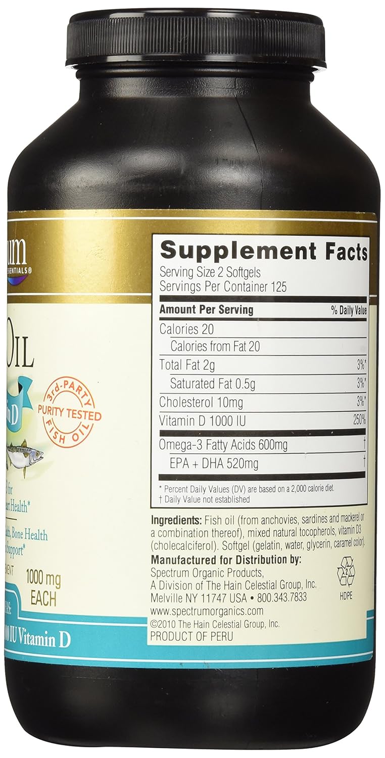 Spectrum Essentials Fish Oil With Vitamin D 1000 Mg 250 Softgels