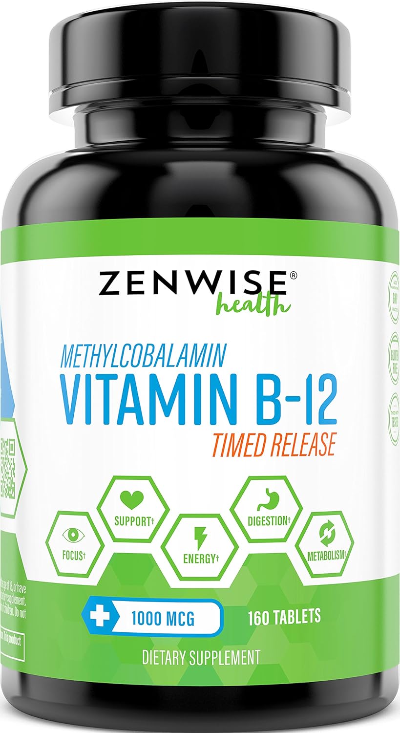 Vitamin B12 1000 Mcg Supplement Natural Energy Booster Benefits Heart Digestive And Brain Function 160 Count Timed Release Tablets