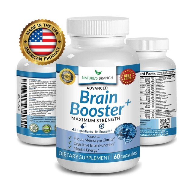 Natural Herbal Brain Booster Increase Focus Energy Memory Clarity Best Brain Vitamin Supplement