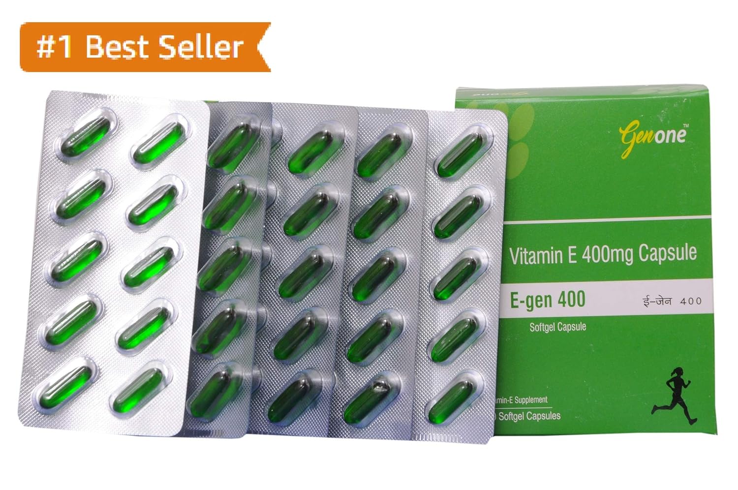 Genone E Gen 400 Natural Vitamin E Oil Capsule For Healthy Skin And Hairs 50 Capsules