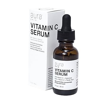 Aura Skin Vitamin C Serum 20 Vitamin C Hyaluronic Acid Ferulic Acid Vitamin E To Reduce Wrinkles And Boost Collagen Anti Aging