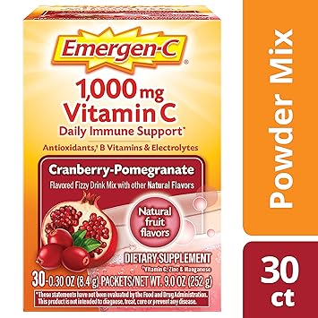 Emergen C 30 Count Cranberry Pomegranate Flavor 1 Month Supply Dietary Supplement Fizzy Drink Mix With 1000mg Vitamin C 0 30 Ounce Powder
