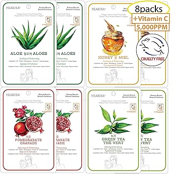 Mearosa Natural Face Mask Sheet Mask Korean Skin Care Premium Quality Vitamin C Anti Aging Care Natural Collagen Essence Sensitive Skin 8 Sheets